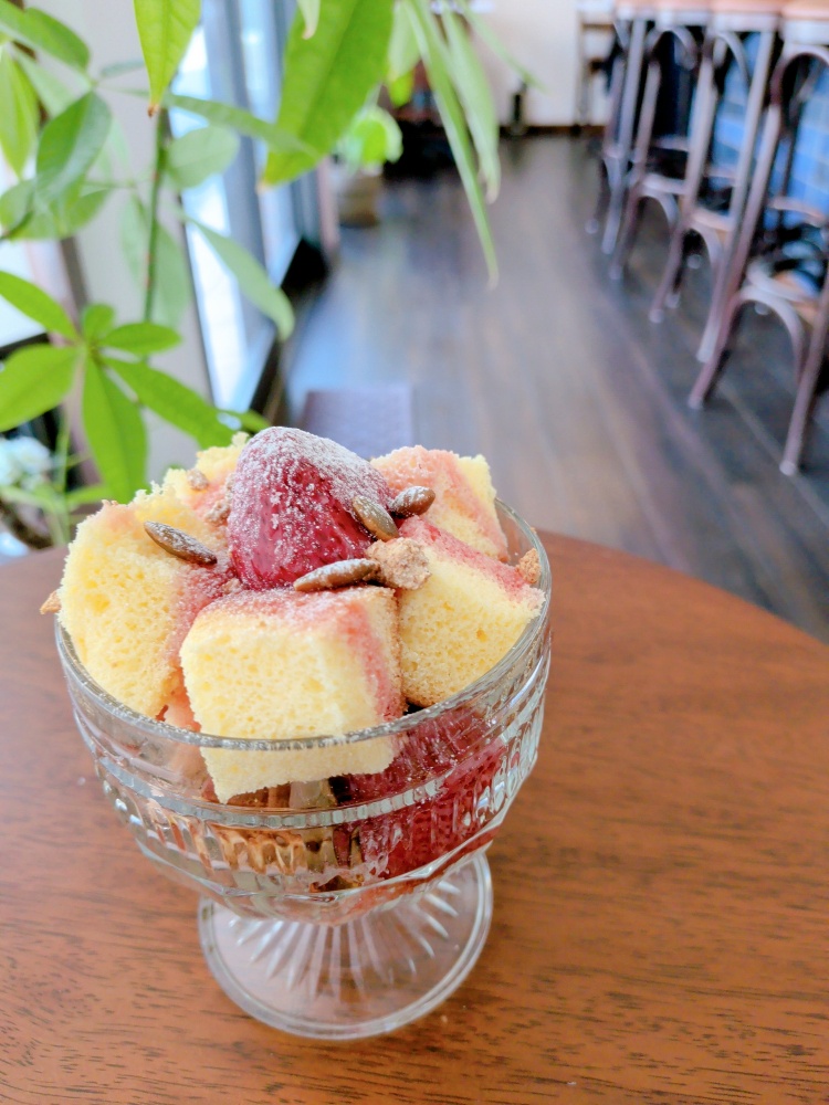 ■米粉シフォンいちごソース掛け